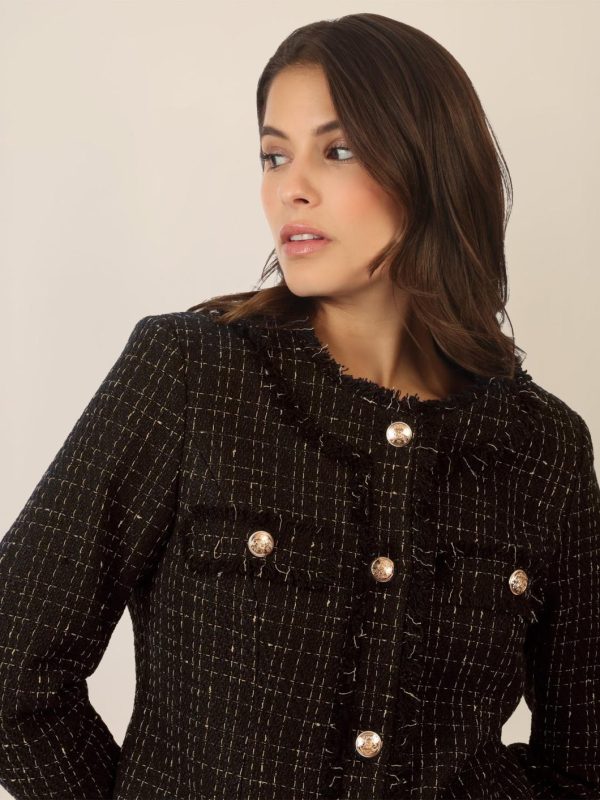 APART Fashion BLAZER & ANZÜGE | DAMEN Boucléblazer Mit Eingewebten, Goldfarbenen Fasern Schwarz-multicolor