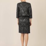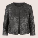 Dieser kurze Blazer aus edlem, strukturiertem Jacquard mit metallisierenden Fäden bringt eleganten Schimmer in jeden Look. Der runde Ausschnitt und die klare, gerade Vorderkante mit verdecktem Hakenverschluss sorgen für eine cleane Silhouette. Formgebende Teilungsnähte unterstreichen den femininen Schnitt, während die 3/4-Ärmel Leichtigkeit verleihen. Vollständig gefüttert – für höchsten Tragekomfort. Länge: ca. 44 cm.