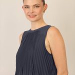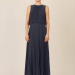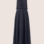 Dieses traumhafte Maxikleid ist ein echtes Statement in Sachen Leichtigkeit und Stil. Das Oberteil besticht mit lose fallendem Sonnenplissee bis zur Taille und einem schmalen, sichtbaren Halsring, der dem runden Ausschnitt vorne und hinten eine raffinierte Struktur verleiht. Darunter sorgt ein schmal geschnittenes Futter mit formgebenden Abnähern für eine perfekte Passform. Die schmale Taillennaht betont die Silhouette, bevor der Rockpart in weitschwingendem Sonnenplissee für Bewegung und Glamour sorgt. Der Reißverschluss in der hinteren Mitte vollendet das Design. Länge: ca. 150 cm – ideal für elegante Auftritte mit Wow-Effekt.