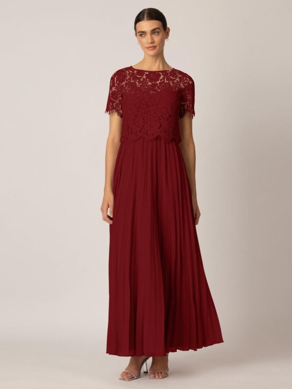 - Schmal geschnittenem Oberteil und weitem Sonnenplisseerock