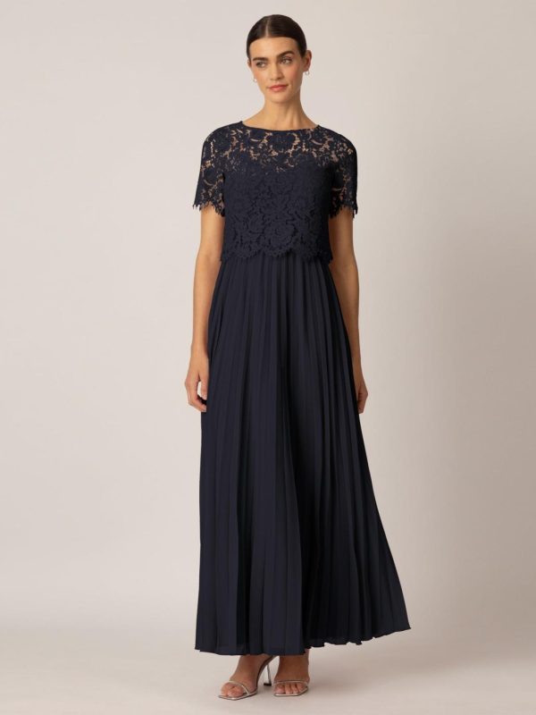- Schmal geschnittenem Oberteil und weitem Sonnenplisseerock