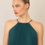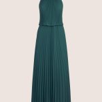 Dieses Chiffonkleid im eleganten Neckholder-Stil ist ein wahres Statement-Piece! Der edle Plissee-Fall umspielt fließend die Silhouette und verleiht dir einen Look mit Wow-Effekt. Highlight: Der goldfarbene Kettenträger am Ausschnitt sorgt für glamouröse Akzente und macht jedes Schmuckstück überflüssig. Ein femininer Rückenschlitz mit Knopfverschluss sowie ein bequemer Gummizug in der Taille runden das Design stilvoll ab. Mit einer Maxilänge von ca. 150 cm bist du bereit für lange Sommernächte, Events und unvergessliche Momente.