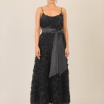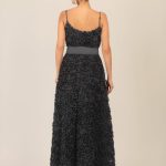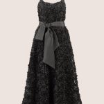 Dieses knöchellange Cocktailkleid aus feinem Mesh bezaubert mit einer spektakulären Allover-Verzierung aus voluminösen Laser-Cut-Rosetten, die dem Design eine exquisite 3D-Optik verleihen. Die tiefen, runden Ausschnitte vorne und hinten bringen subtile Sinnlichkeit ins Spiel, während verstellbare Spaghettiträger für individuellen Tragekomfort sorgen. Die femininen Teilungsnähte und die Taillennaht betonen die Figur, bevor der ausgestellte Rock in Glockenform schwungvoll in Bewegung gerät. Praktische seitliche Eingriffstaschen und ein seitlicher Reißverschluss ergänzen das Design ebenso wie der separate, breite Bindegürtel, der für zusätzliche Raffinesse sorgt. Vollständig gefüttert garantiert das Kleid ein angenehmes Tragegefühl – ideal für elegante Cocktailpartys, Sommerfeste oder romantische Events.