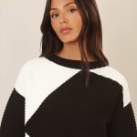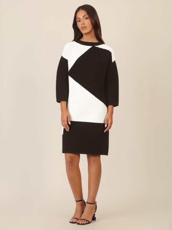 APART Fashion KLEIDER | DAMEN Colorblocking Strickkleid Mit Grafischem Strukturmuster Schwarz-creme