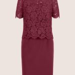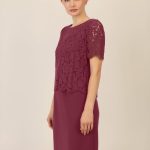 Ein femininer Look mit raffiniertem Zusammenspiel: Das Etuikleid mit quadratischem Ausschnitt vorn und hinten überzeugt durch seine figurnahe Silhouette mit formgebenden Nähten, breiten Trägern und einem breiten Tailleneinsatz. Die schmale Rockform wird durch einen Gehschlitz und einen Reißverschluss hinten ergänzt. Für den besonderen Touch sorgt das separate, feine Jäckchen aus plastischer Spitze mit zartem Punktmuster, das hinten mit Knöpfen geschlossen wird. Runder Ausschnitt, kurze Ärmel und Bogenkanten am Saum runden das Design stilvoll ab. Kleidlänge: ca. 98 cm, Jäckchen: ca. 50 cm.