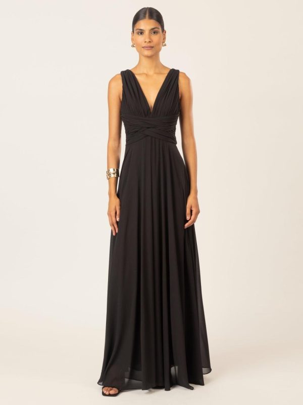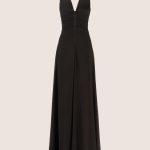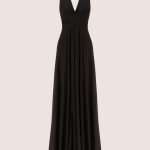 Dieses romantische Kleid zeichnet sich durch seinen tiefen V-Ausschnitt und eine raffinierte Wickeloptik im Brustbereich aus. Die weiche, fließende Silhouette und der subtile, lange Schlitz sorgen für eine feminine und elegante Note. Das Rückendetail mit tiefem V-Ausschnitt unterstreicht die Anmut und Leichtigkeit des Designs. Ein perfektes Kleid für Hochzeiten, Sommerfeste oder besondere Anlässe.