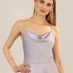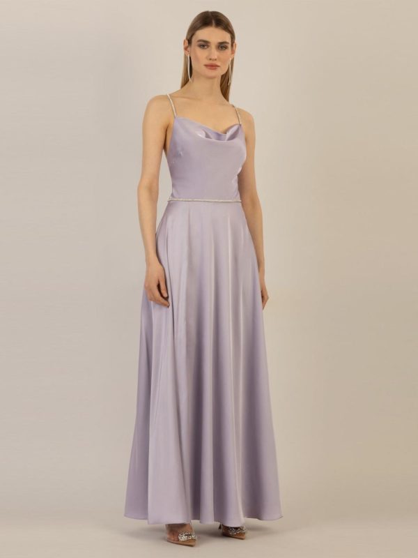 Edles Abendkleid mit filigranen Spaghettiträgern und eleganter Rückenpartie. Der figurbetonte Schnitt betont die Taille, während der fließende Rock für eine feminine und schwungvolle Silhouette sorgt. Das schlichte Oberteil harmoniert perfekt mit den zarten Trägerdetails und bietet eine zeitlose Optik.