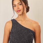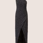 Ein Abendkleid, das alle Blicke auf sich zieht! Die figurbetonte Silhouette aus hochelastischer, allover mit Perlen bestickter Ware umschmeichelt deinen Körper mit funkelndem Luxus. Der asymmetrische One-Shoulder-Ausschnitt sorgt zusammen mit Raffungen entlang der linken Seite und einem eleganten Schlitz für Drama und Dynamik. Der raffinierte Wickeleffekt ab der Hüfte unterstreicht die extravagante Linienführung. Ein Silikonband im Ausschnitt hält alles sicher in Form. Vollständig gefüttert für ein angenehmes Tragegefühl. Länge: ca. 150cm.