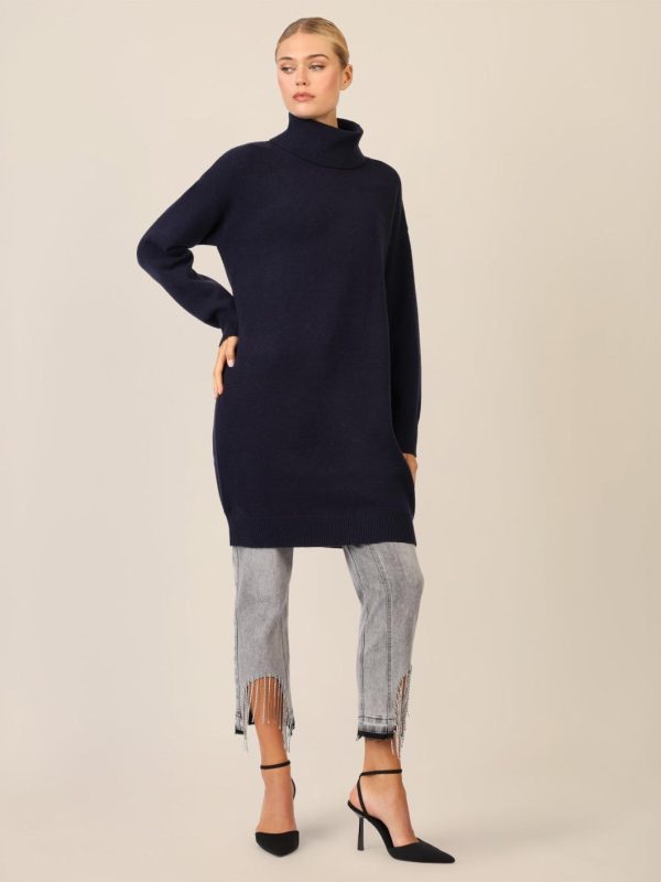 Dieses kurze Strickkleid begeistert im lässigen Oversized-Look – perfekt für entspannte Fashion-Momente. Die hochwertige, soften Viskose-Kaschmir-Mischung sorgt für ein geschmeidiges Tragegefühl, während der große Rippen-Rollkragen dem Style eine cozy Note verleiht. Mit überschnittenen Schultern und weit geschnittenen Ärmeln ist es das ideale Piece für kühle Tage. Die gerade, legere Silhouette wird durch Rippenbündchen an Saum und Ärmeln abgerundet. Länge: ca. 94 cm.