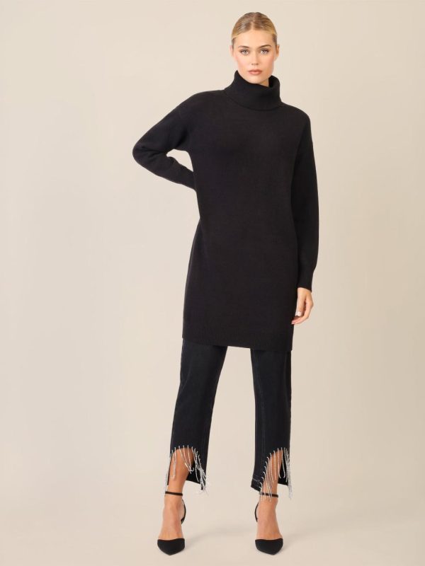 Dieses kurze Strickkleid begeistert im lässigen Oversized-Look – perfekt für entspannte Fashion-Momente. Die hochwertige, soften Viskose-Kaschmir-Mischung sorgt für ein geschmeidiges Tragegefühl, während der große Rippen-Rollkragen dem Style eine cozy Note verleiht. Mit überschnittenen Schultern und weit geschnittenen Ärmeln ist es das ideale Piece für kühle Tage. Die gerade, legere Silhouette wird durch Rippenbündchen an Saum und Ärmeln abgerundet. Länge: ca. 94 cm.