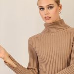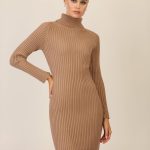 APART Fashion KLEIDER | DAMEN Rippenstrickkleid Mit Rollkragen Camel