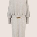 APART Fashion KLEIDER | DAMEN Strickkleid Mit Gliederkette Detail Gürtel Graumeliert