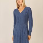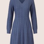 Dieses kurze Strickkleid begeistert mit seinem charmanten Zopfmuster und einer hochwertigen Viskose-Kaschmir-Mischung, die wunderbar weich auf der Haut liegt. Der tiefe V-Ausschnitt mit breiter Rippenblende sorgt für einen modernen Look, während die langen Ärmel mit breitem Bündchen Gemütlichkeit versprechen. Die leicht taillierte Silhouette und der ausgestellte Rockpart verleihen dem Kleid eine verspielte, feminine Bewegung – perfekt für stilvolle Auftritte im Alltag oder zu besonderen Anlässen. Länge: ca. 94 cm.