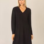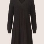 Dieses kurze Strickkleid begeistert mit seinem charmanten Zopfmuster und einer hochwertigen Viskose-Kaschmir-Mischung, die wunderbar weich auf der Haut liegt. Der tiefe V-Ausschnitt mit breiter Rippenblende sorgt für einen modernen Look, während die langen Ärmel mit breitem Bündchen Gemütlichkeit versprechen. Die leicht taillierte Silhouette und der ausgestellte Rockpart verleihen dem Kleid eine verspielte, feminine Bewegung – perfekt für stilvolle Auftritte im Alltag oder zu besonderen Anlässen. Länge: ca. 94 cm.