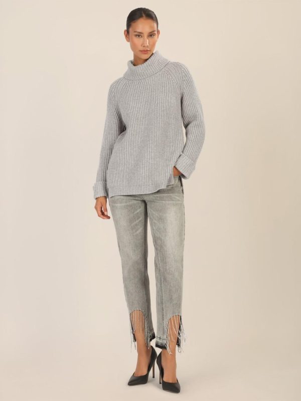 Gemütlich trifft auf luxuriös! Dieser oversized gestrickte Pullover aus einer soften Viskose-Kaschmir-Mischung ist das perfekte Fashion-Piece für stilvolle Wohlfühlmomente. Der weite, runde Ausschnitt wird von einem hohen, großzügigen Rollkragen begleitet – super soft und super trendy. Lange Raglanärmel mit liebevollen fully-fashioned Details und breitem Aufschlag bringen modische Lässigkeit ins Spiel. Die gerade, etwas verkürzte Front harmoniert mit der verlängerten Rückenpartie und den tiefen Seitenschlitzen – ein modernes Update für klassische Strickmode. Hinten ca. 74 cm lang und gestrickt im angesagten Halbpatent – dieser Pullover ist dein Must-have für entspannte Tage mit Style-Garantie!
