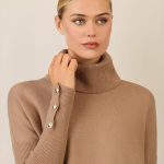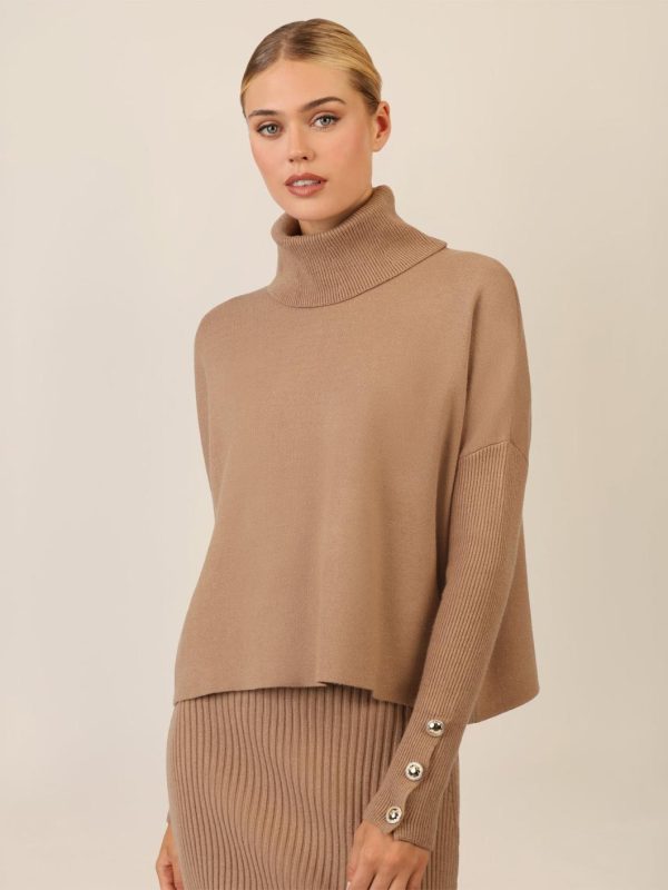 APART Fashion OBERTEILE | DAMEN Oversized Pullover Mit Rollkragen Und Schmuckknöpfen Camel
