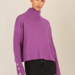 APART Fashion OBERTEILE | DAMEN Oversized Pullover Mit Rollkragen Und Schmuckknöpfen Lila