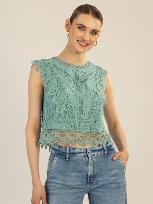 APART Fashion OBERTEILE | DAMEN Spitzentop Aus Einer Plastischen Spitze Und Mit Spitzenband Verziert Jade