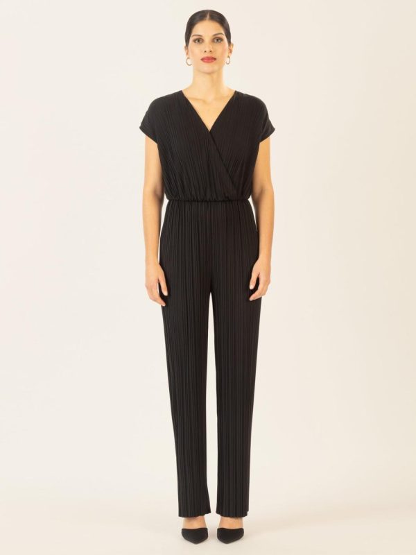 Dieser stilvolle Jerseyoverall kombiniert Komfort und Eleganz in einem modernen Design. Das Oberteil mit Wickeloptik und V-Ausschnitt betont das Dekolleté und schafft eine schmeichelhafte Silhouette. Die kurzen, leicht überschnittenen Ärmel verleihen dem Look einen lässigen Touch. Der weich fließende Plisseestoff sorgt für eine entspannte Passform, während der elastische Taillenbund die Figur gekonnt betont. Die gerade geschnittenen Hosenbeine bieten Bewegungsfreiheit und verleihen dem Overall einen zeitlosen Look. Ideal für vielseitige Anlässe, von eleganten Events bis hin zu lässigen Tagesoutfits.
