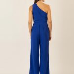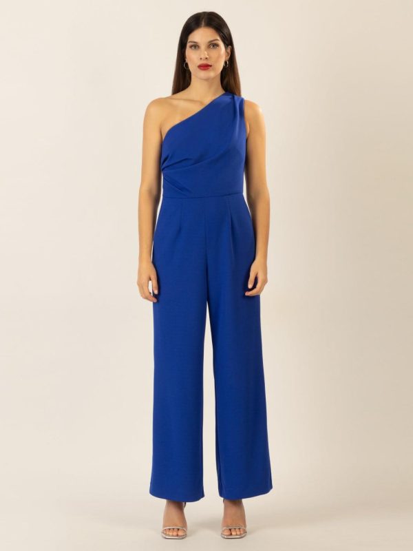 Ein moderner Overall im One-Shoulder-Design mit eleganter Drapierung. Die lange, gerade geschnittene Beinpartie sorgt für eine gestreckte Silhouette. Ideal für besondere Anlässe oder stilvolle Auftritte.