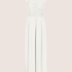 Ein Overall mit einem zarten Spitzenoberteil und fließendem Hosenbein. Rundhalsausschnitt für eine klassische Silhouette. Ärmelloses Spitzenoberteil mit feiner Verzierung. Taillierte Passform für eine feminine Betonung. Weit geschnittenes Hosenbein für eleganten Fall. Reißverschluss am Rücken für leichtes Anziehen. Die Kombination von femininen Details und klarer Linienführung macht ihn zu einem echten Hingucker.