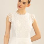 - Runder Ausschnitt mit Spitzenstehkragen, Taillenabnäher
