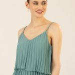 Eleganter Plissee-Overall mit schmalen Spaghettiträgern und V-Ausschnitt. Das locker fallende Oberteil und die plissierte Hose sorgen für eine luftige Silhouette, während das Design eine moderne und zugleich feminine Optik bietet.