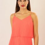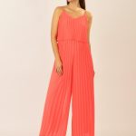 Eleganter Plissee-Overall mit schmalen Spaghettiträgern und V-Ausschnitt. Das locker fallende Oberteil und die plissierte Hose sorgen für eine luftige Silhouette, während das Design eine moderne und zugleich feminine Optik bietet.