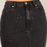Ein Denim-Piece mit Glam-Faktor: Dieser 5-Pocket Jeansrock in angesagter Stone-Washed-Optik wird durch schwarze Kristallsteine allover zum absoluten Highlight. Der Formbund mit Gürtelschlaufen und der mattsilberfarbene Nietenknopf am Bund unterstreichen den klassischen Jeanslook. Mit Zipper-Fly und aufgesetzten Gesäßtaschen zeigt sich der Rock zugleich lässig und edel. Länge: ca. 84 cm.